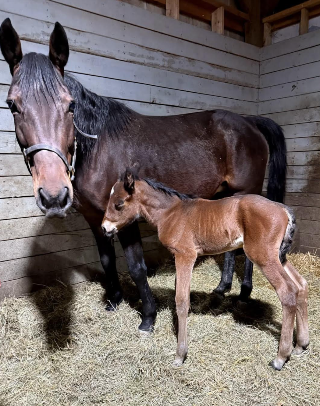 We have not yet completed the official naming process with the U.S. Trotting Association, but our partnership’s inaugural filly is known as “Tayra” by her caretakers, and she’ll be be turned out at historic Norton Farm in Falmouth, Maine until she’s old enough to start training for a debut that could take place in July 2027.